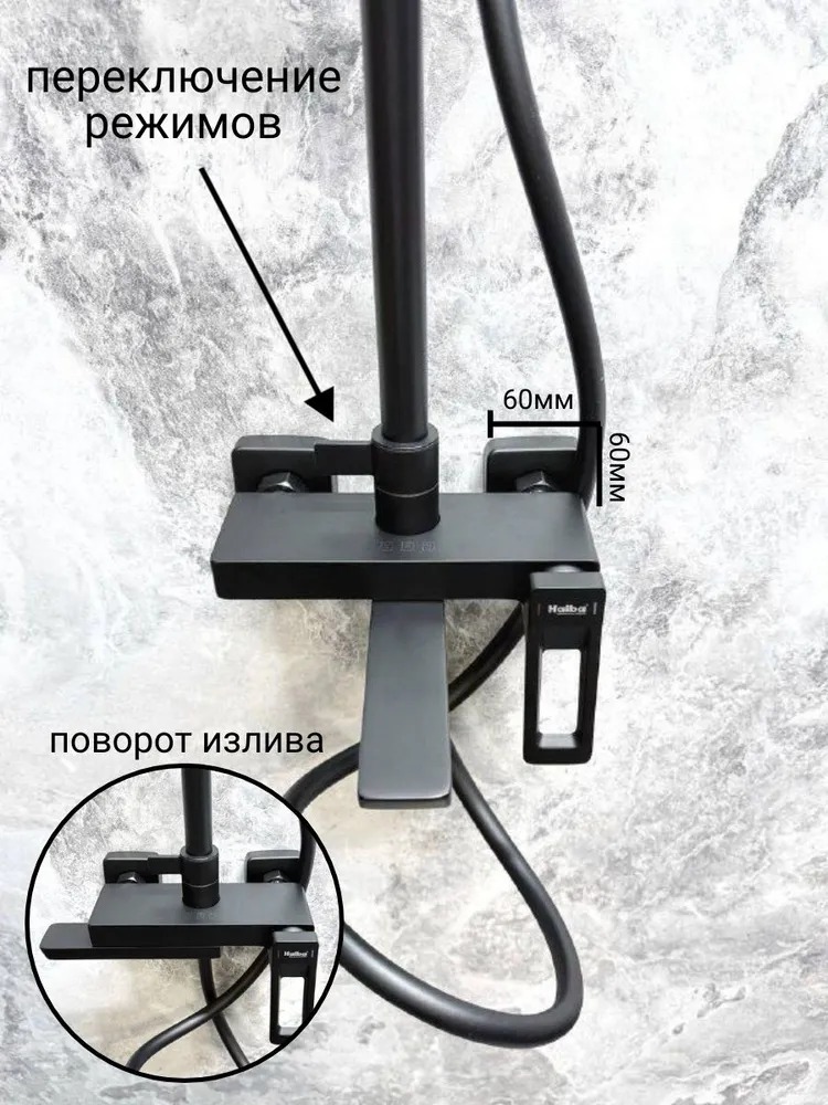 Душевая стойка Haiba HB24732-7, материал латунь, цвет чёрный.