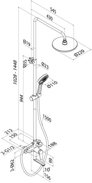 - Регулируемая высота стойки 1028-1448 мм – удобно и для самых высоких.