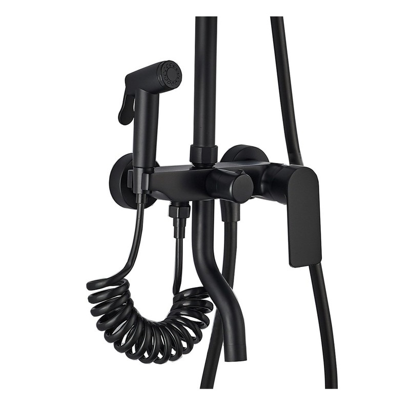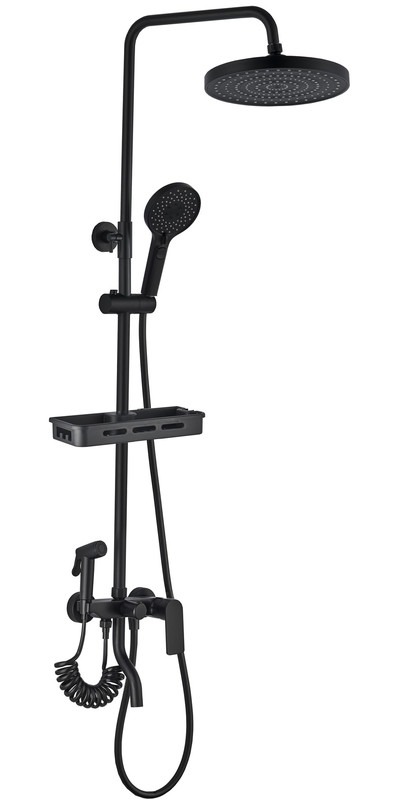 Душевая стойка EvaGold Mau EG400060 с изливом, гигиеническим душем и полкой. Материал - латунь, цвет - чёрный.