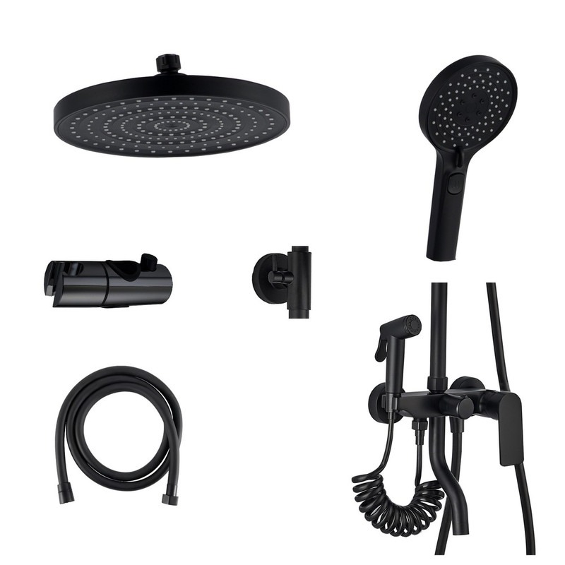 Душевая стойка с гигиеническим душем и полкой EvaGold Mau EG400060, чёрный