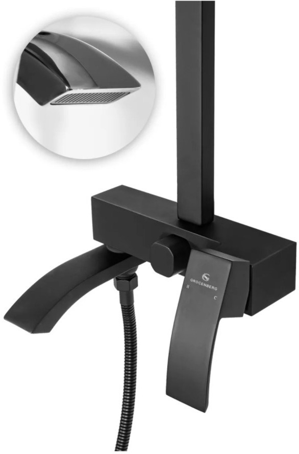 Душевая стойка с изливом Grocenberg GB7007-1BL, чёрный матовый