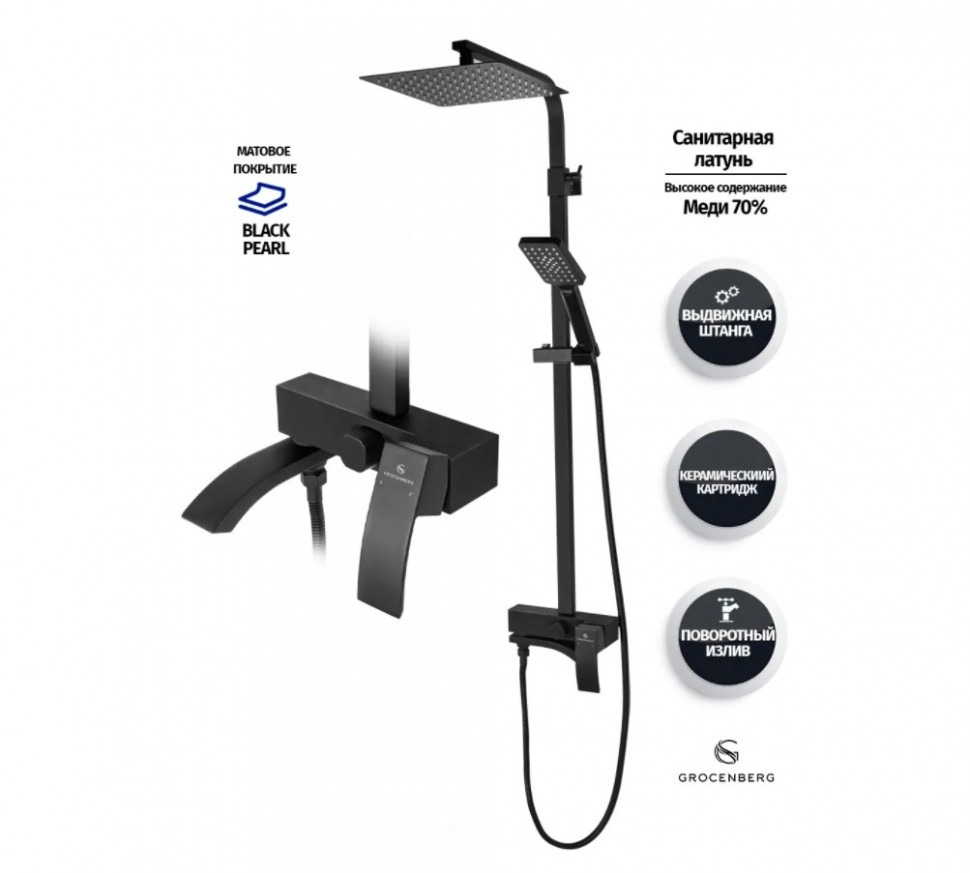 Характеристики душевая система с изливом Grocenberg (GB7007-1BL)