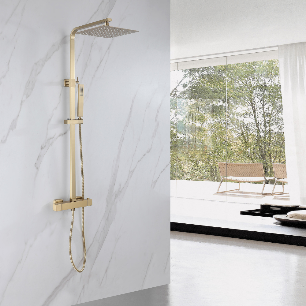 Душевая стойка с термостатом Abber Daheim AF8260GL, золото матовое