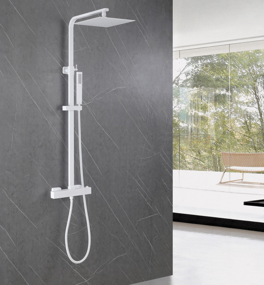 Душевая стойка с термостатом Abber Daheim AF8260WL, материал латунь, цвет белый матовый.
