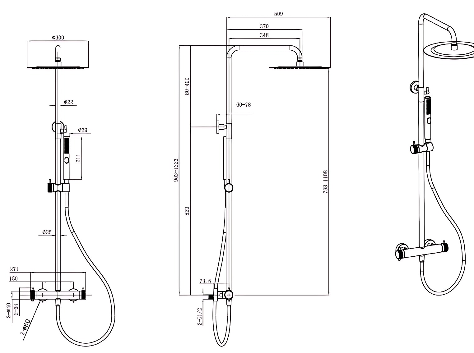 - Шланг для душа: 1,5 м шланг для душа SUS304 (EPDM inside, anti-twist, brass nut) - Корпус COLD TOUCH