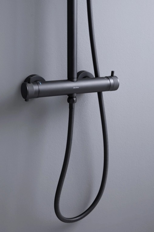 Душевая стойка с термостатом Allen Brau Fantasy 5.11001-31, материал латунь, цвет чёрный матовый.