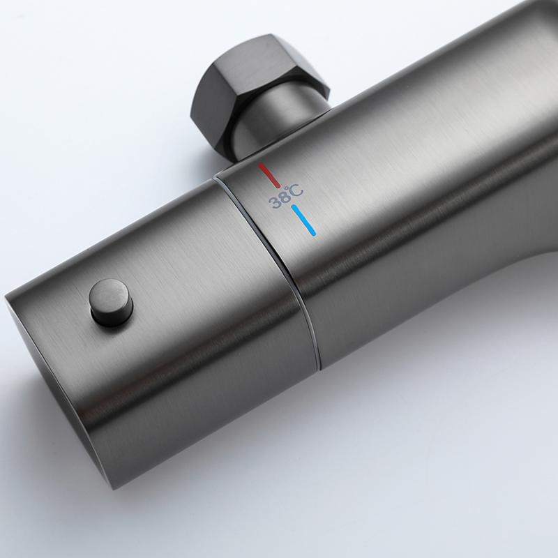 Душевая стойка с термостатом Gappo G2495-79, материал - латунь, цвет - оружейная сталь.