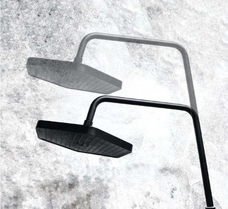 Душевая система для ванны с термостатом и поворотным скрываемым изливом Haiba HB24726-7. Материал - латунь, цвет - чёрный.