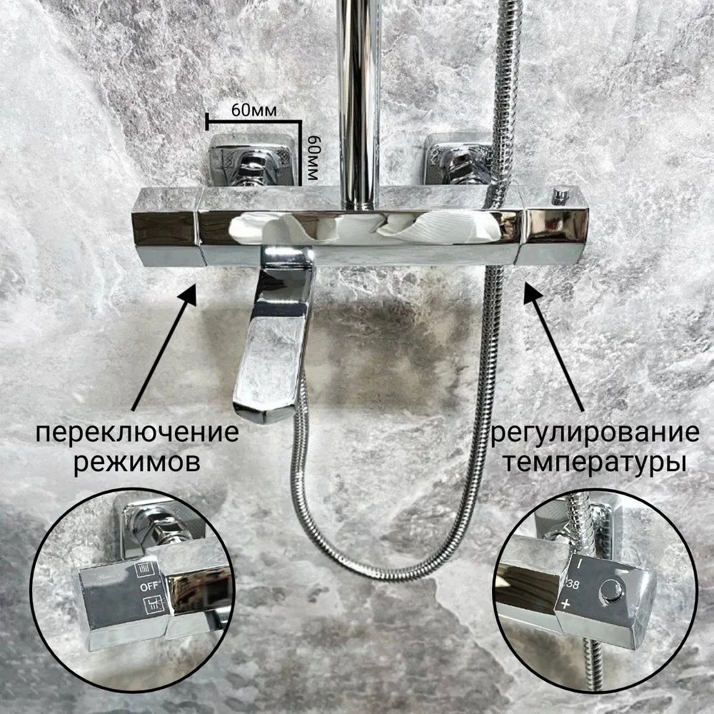Душевая система для ванны с термостатом и поворотным скрываемым изливом Haiba HB24726. Материал - латунь, цвет - хром.