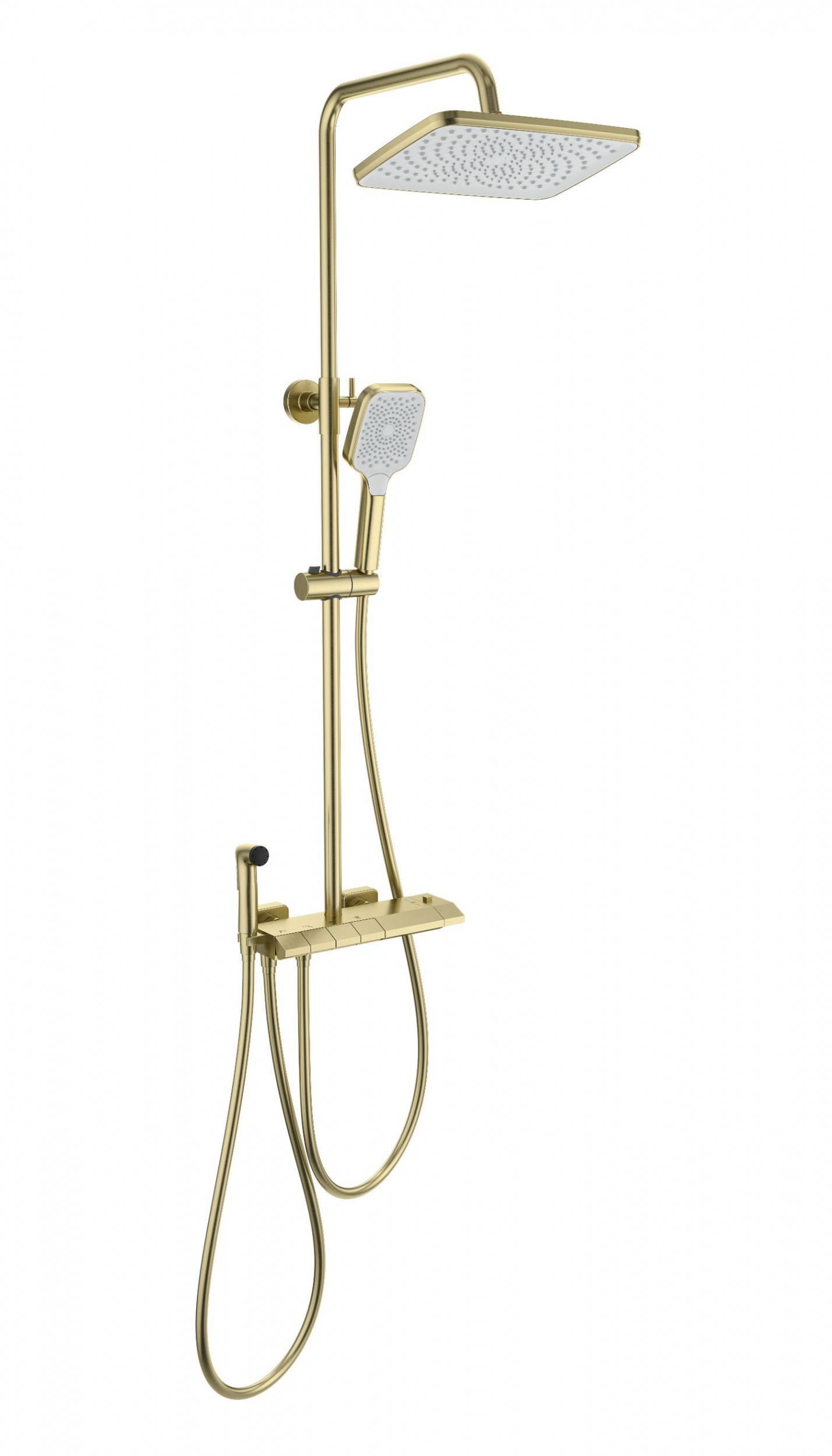 Душевая стойка с термостатом и гигиеническим душем Wonzon & Woghand Muse WW-B4132-A-BG, золото брашированное