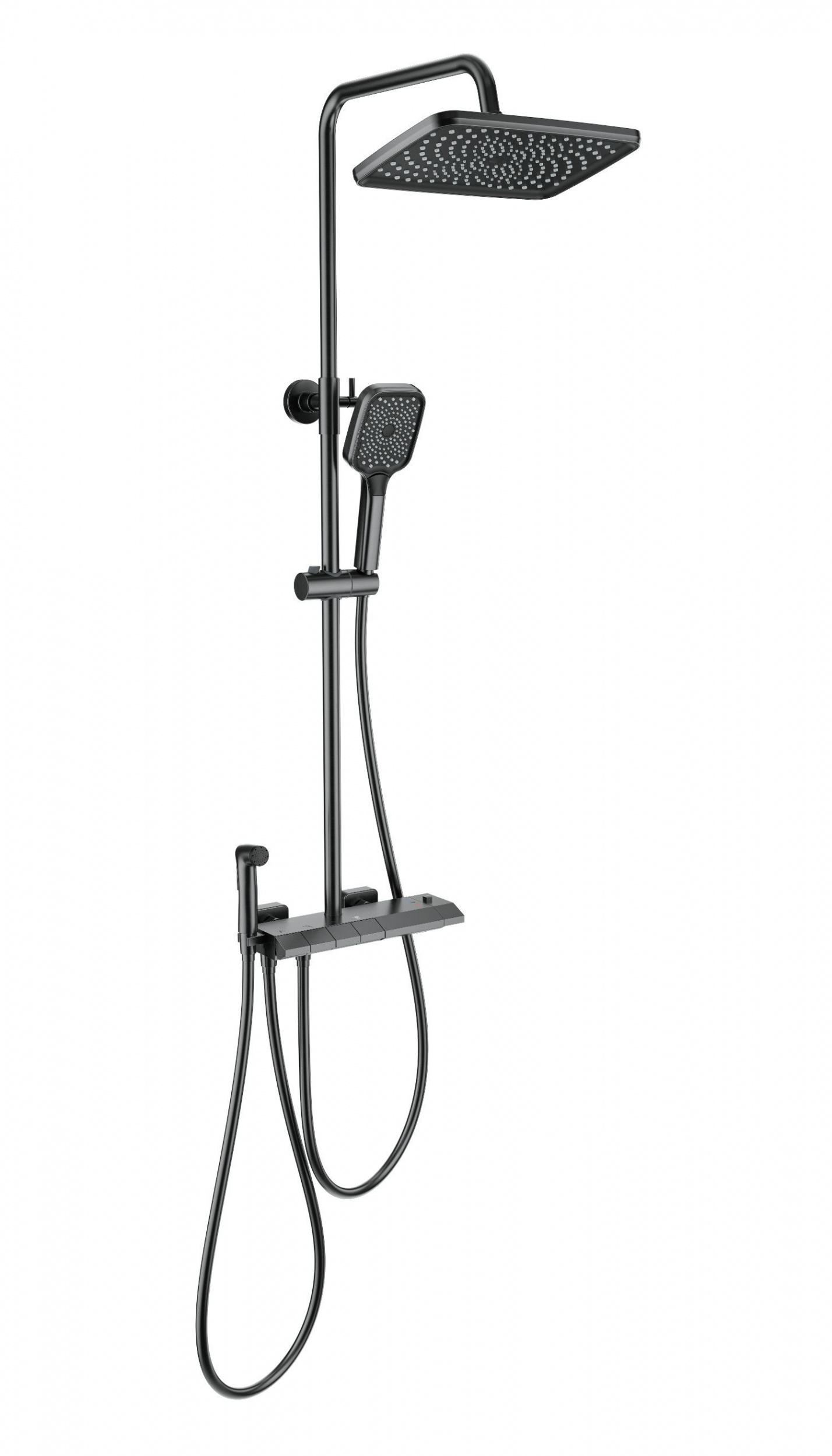 Душевая стойка с термостатом и гигиеническим душем Wonzon & Woghand Muse WW-B4132-A-BGG, тёмный графит брашированный