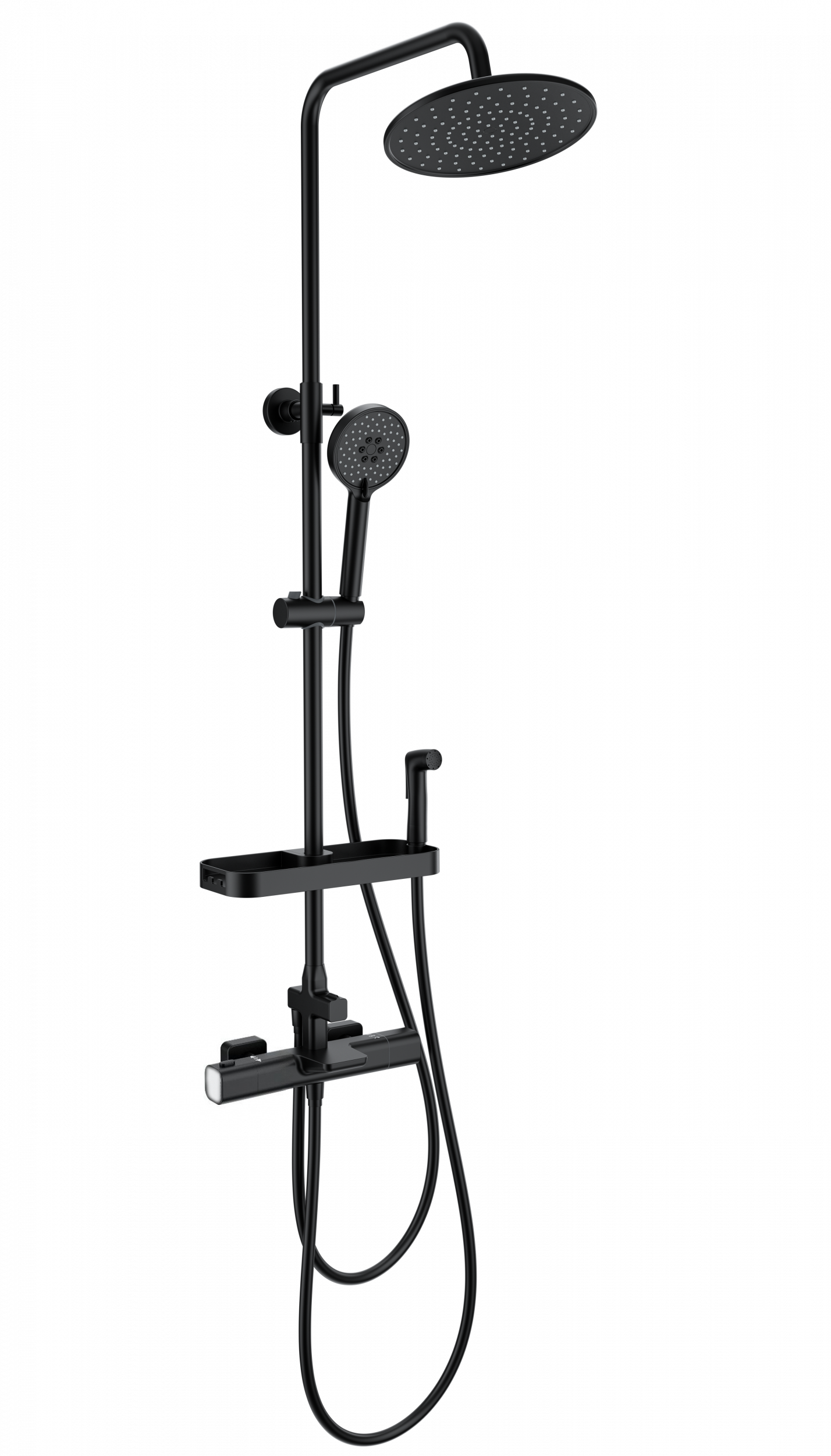 Душевая стойка с термостатом и гигиеническим душем Wonzon & Woghand Plate WW-C3017-A1-MB, чёрный матовый