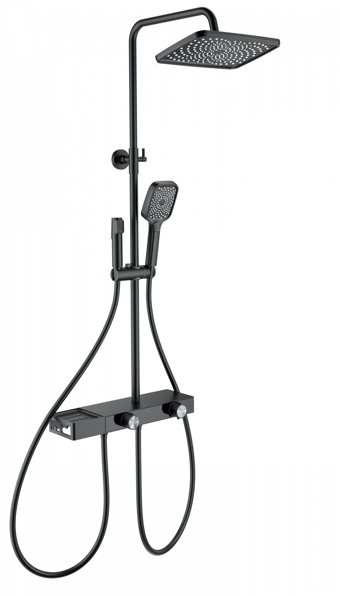 Душевая стойка с термостатом Wonzon & Woghand Shelf WW-B4161-MB с гигиеническим душем, материал латунь, цвет чёрный матовый.