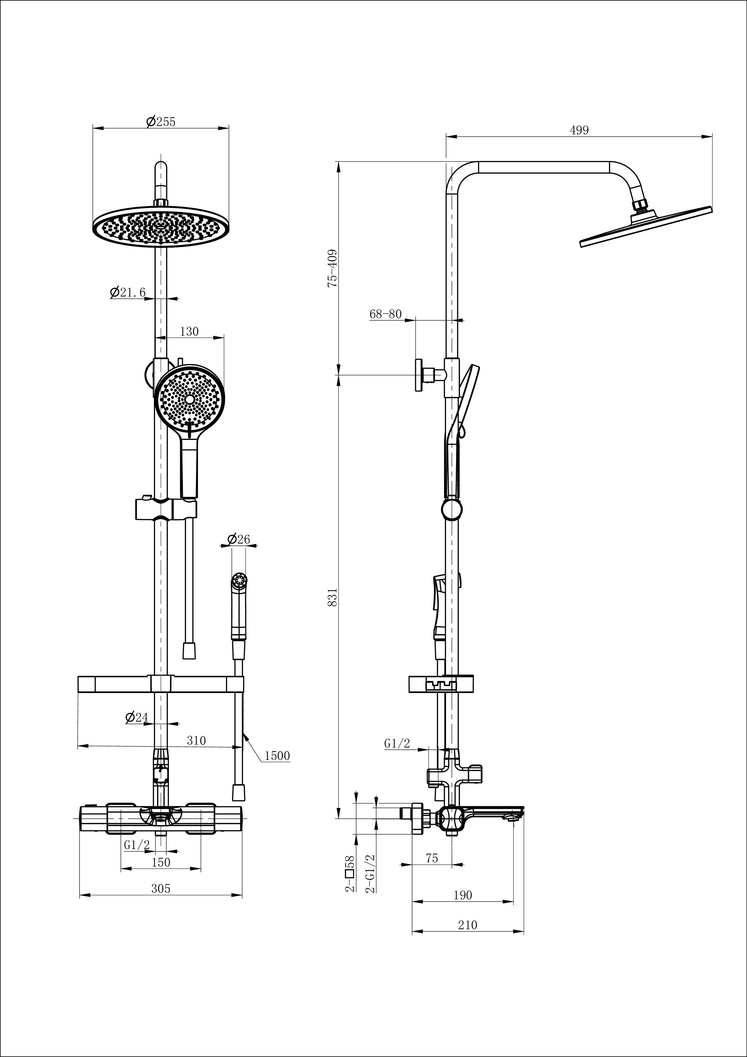 Описание душевая система с изливом Wonzon & Woghand WW-C3011-A1-MW