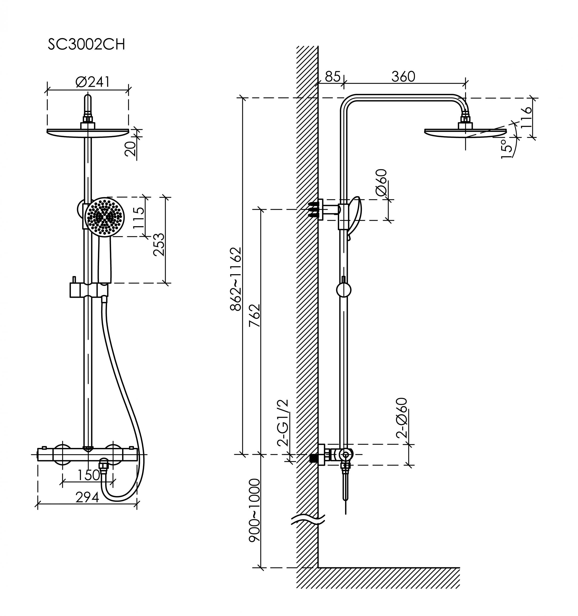 Характеристики душевая система без излива Sancos (SC3002CH)