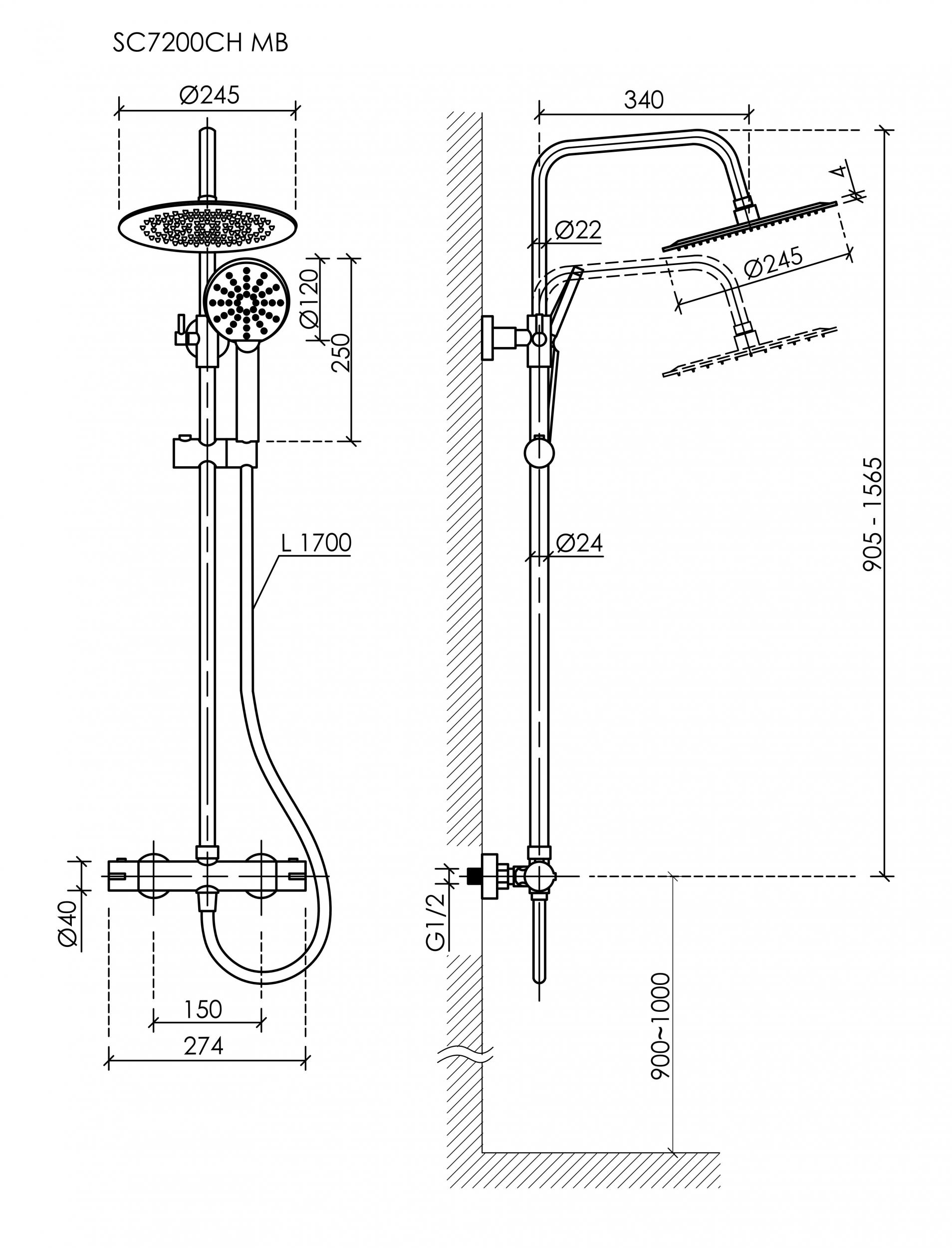 - Металлический верхний душ, диаметр- 245 мм, с регулировкой наклона