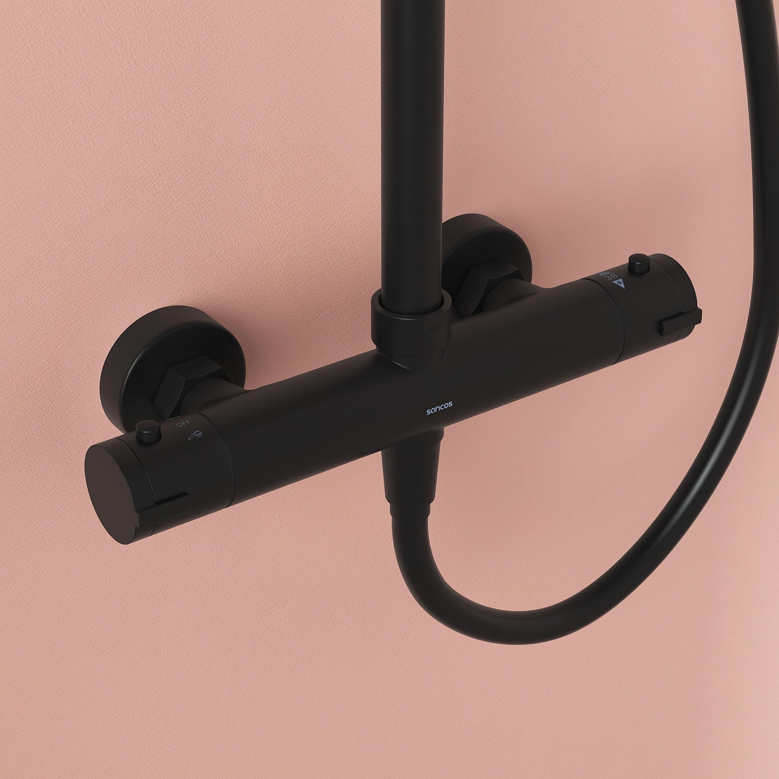 Душевая стойка с термостатом Sancos Kanedo SC7200MB, материал - латунь, цвет - чёрный матовый.