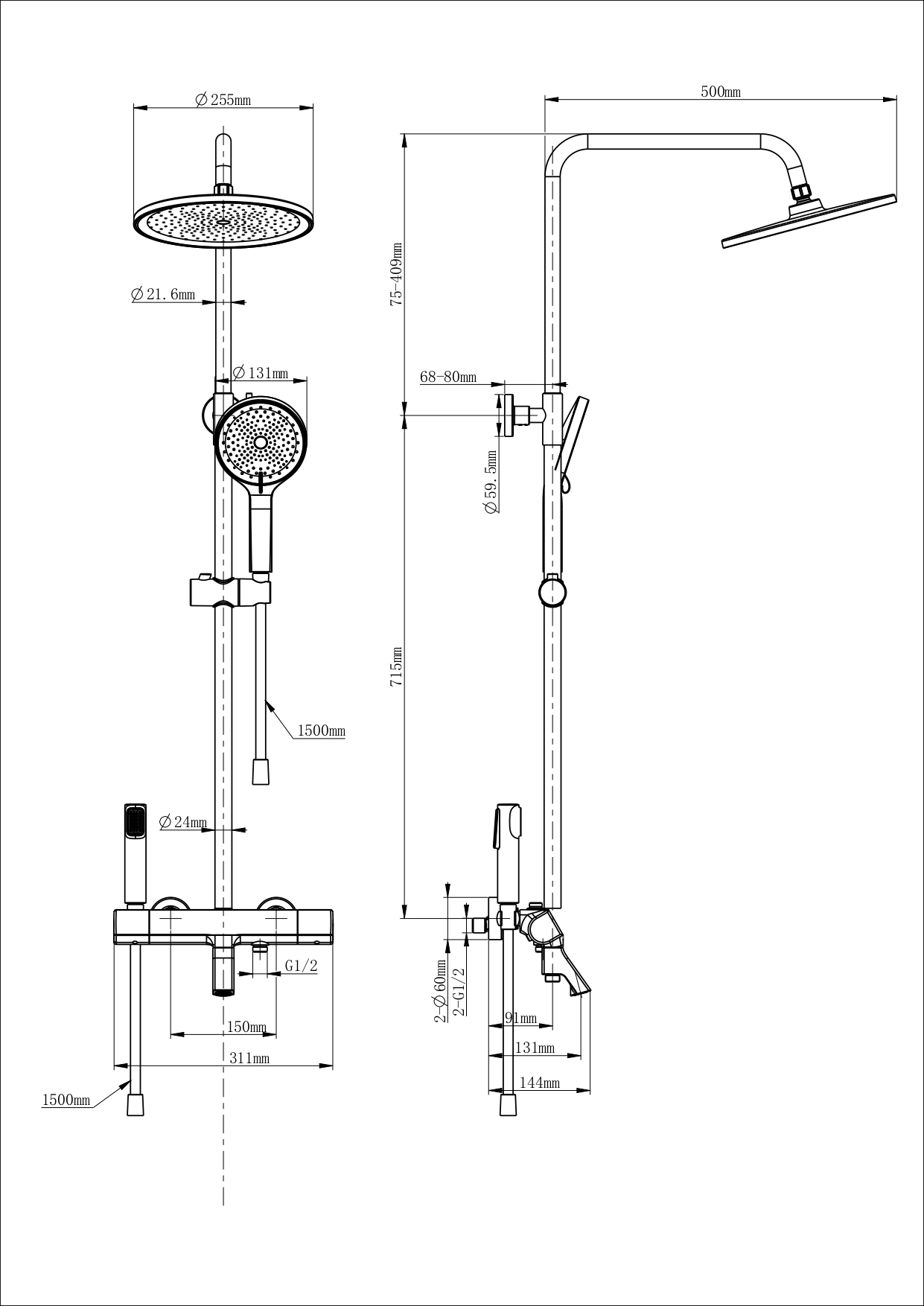 Описание душевая система с изливом Wonzon & Woghand WW-B3094-MB