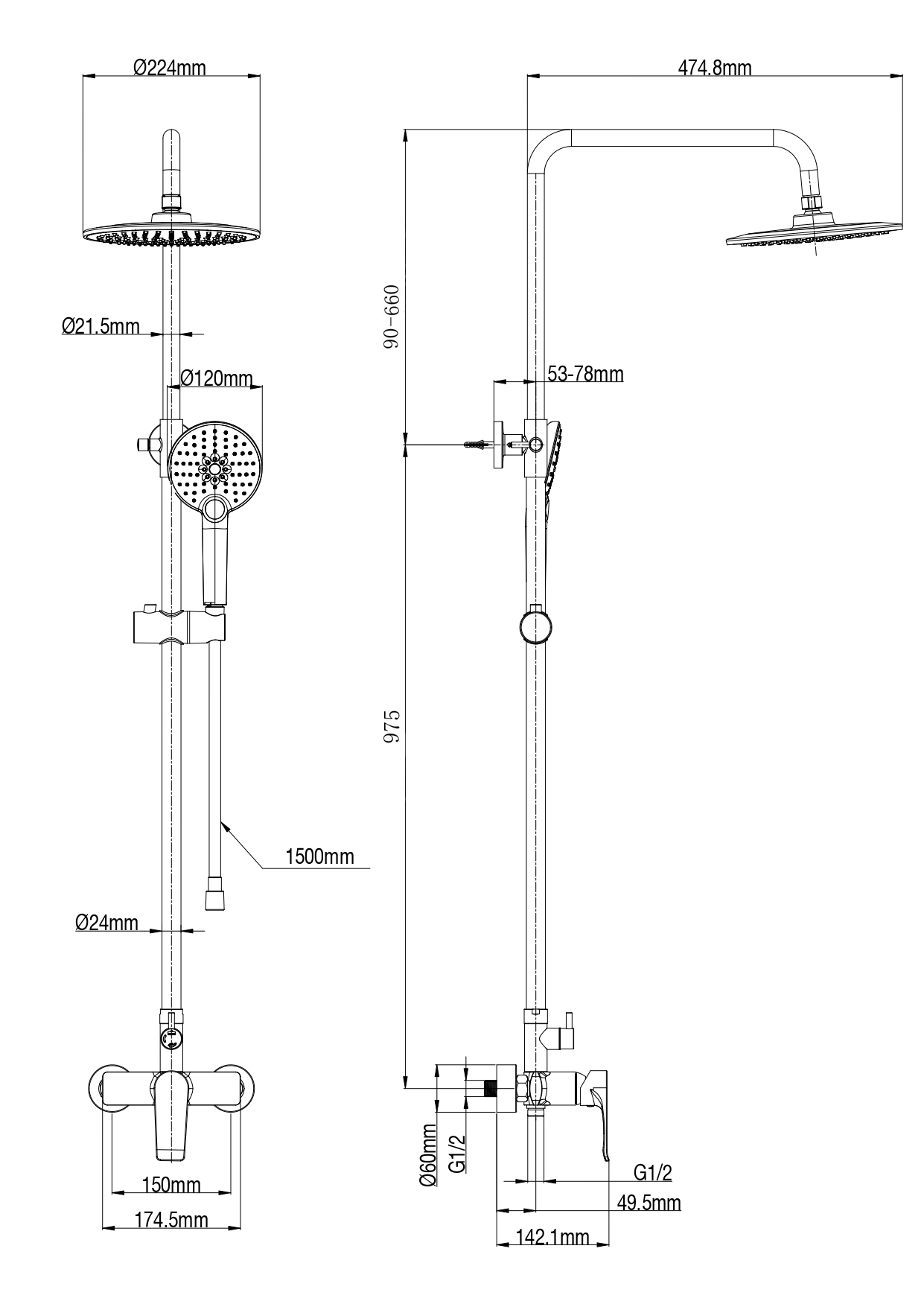Описание душевая система без излива Wonzon & Woghand WW-A30103-MW