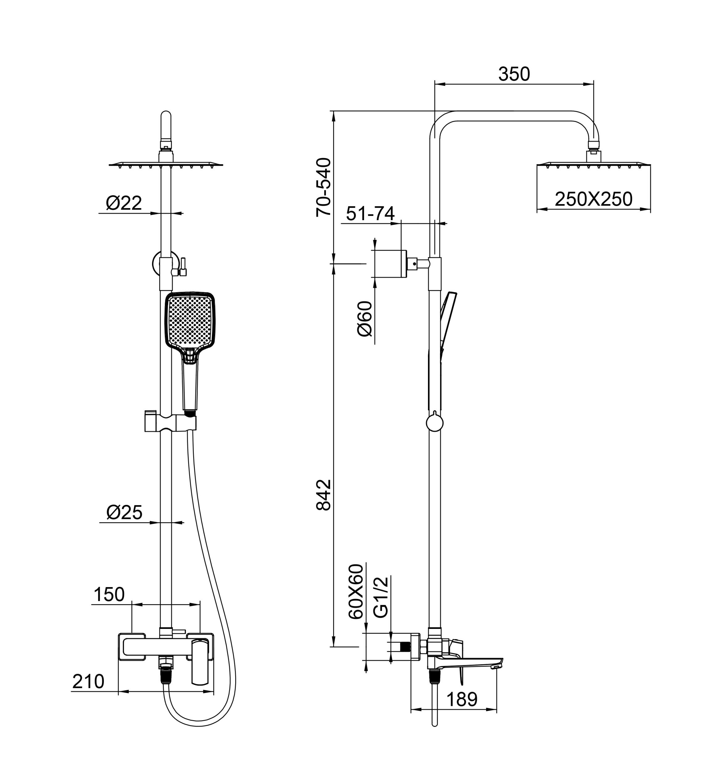 Душевая стойка с выдвижным изливом Wonzon & Woghand Forza WW-739031-BGM, материал латунь, цвет тёмный графит.