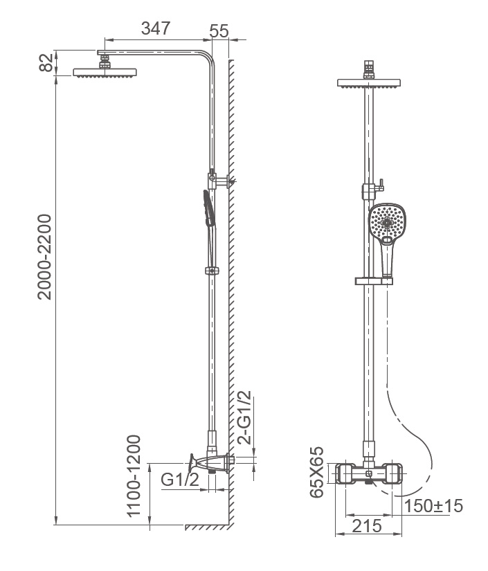 Характеристики душевая система без излива Wonzon & Woghand (WW-654602-DG)