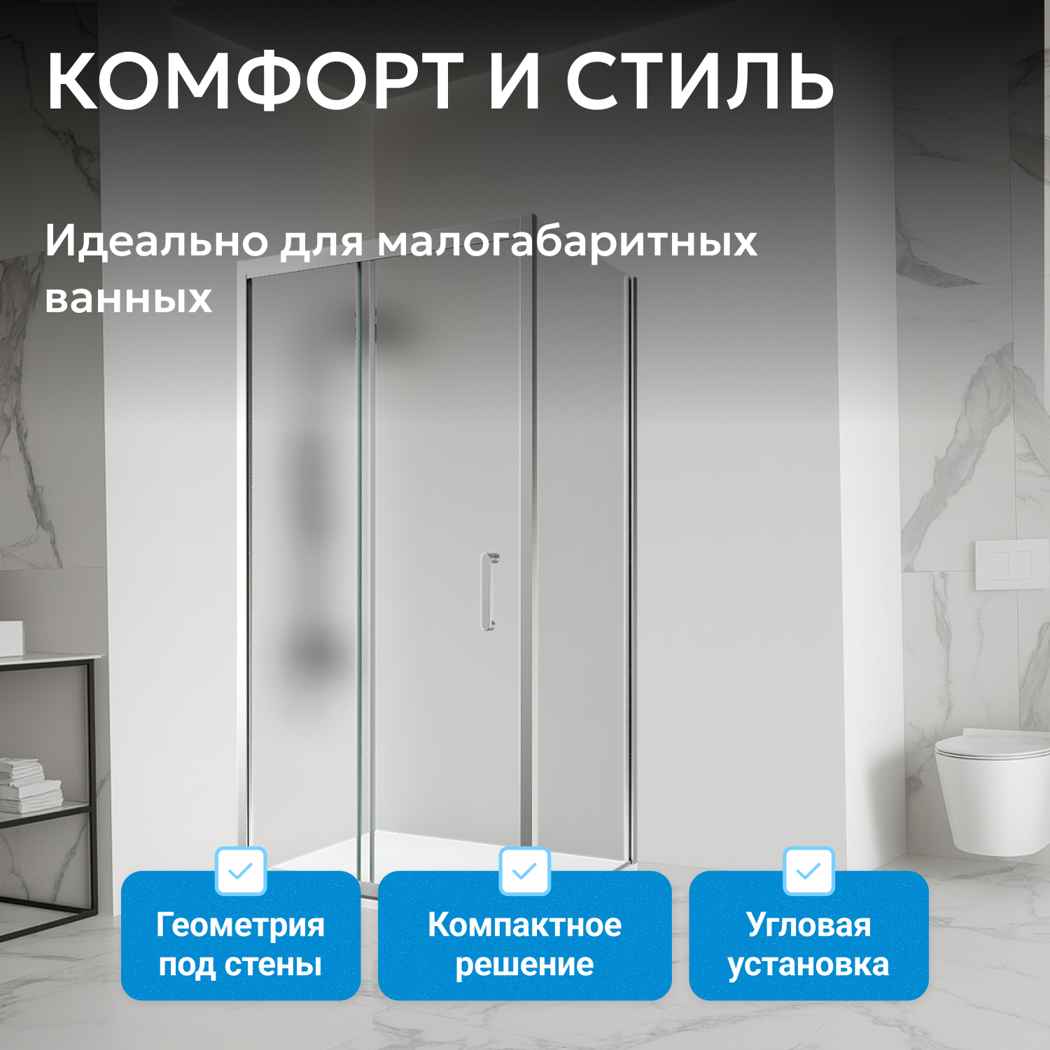 - Установлено матовое закалённое стекло толщиной 6 мм, которое обеспечивает безопасность и скрывает капли воды. Универсальная конструкция допускает монтаж как в левом, так и в правом исполнении, что позволяет использовать уголок в различных планировках.