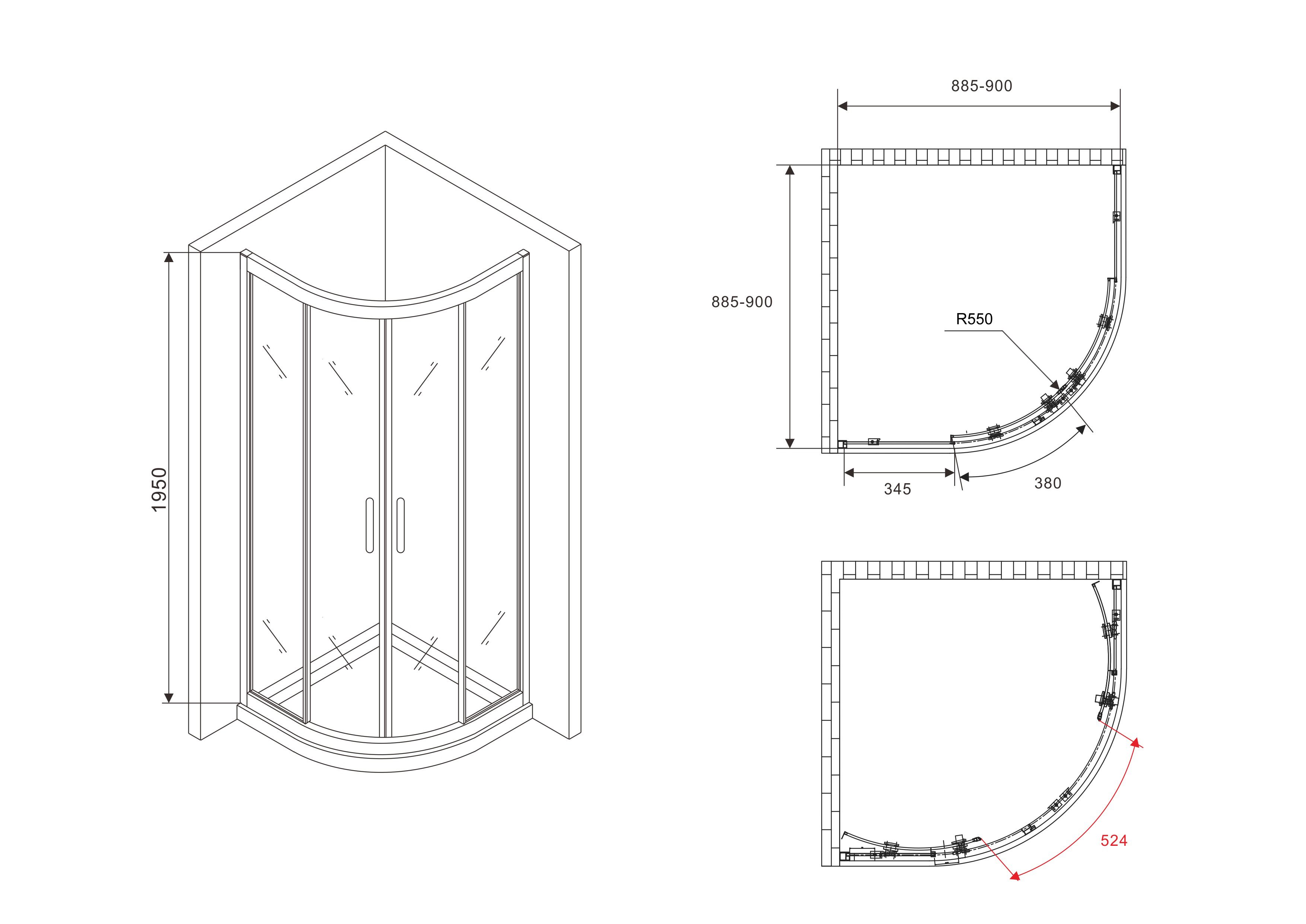 - Радиальный душевой уголок