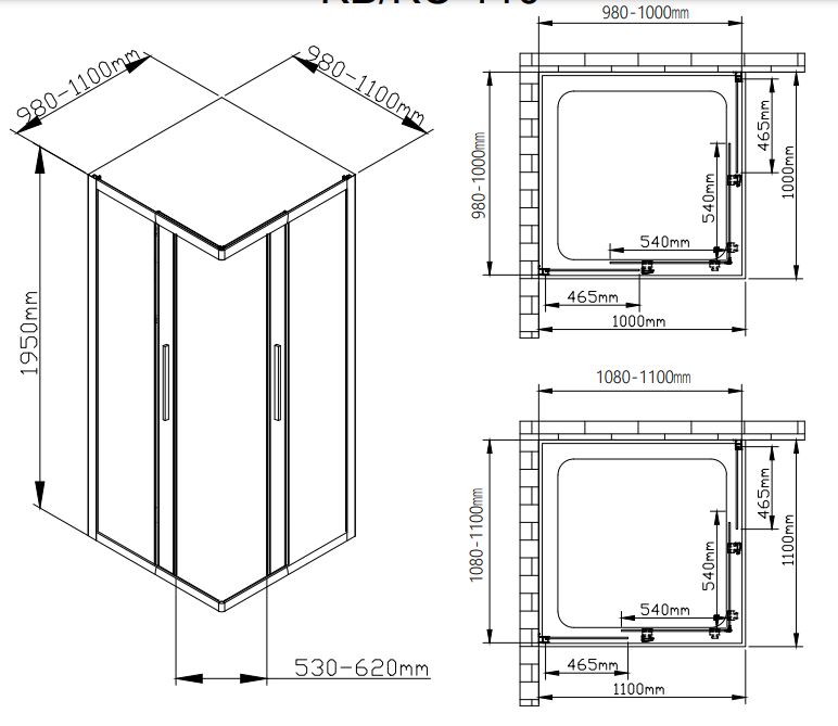 Душевое ограждение Avacan (100-110)х(100-110) см KB100, чёрный/узор