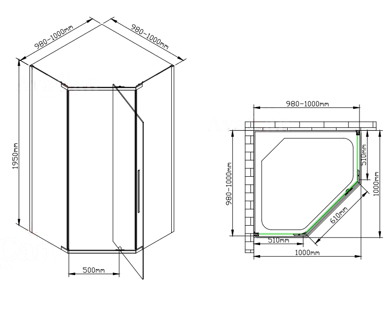 - Душевой уголок AvaCan PB 100 Black размер 980-1000-195