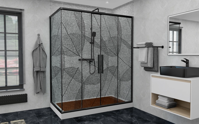 Душевое ограждение Avacan (170-190)х80 см FB2-170-SB80, чёрный/узор