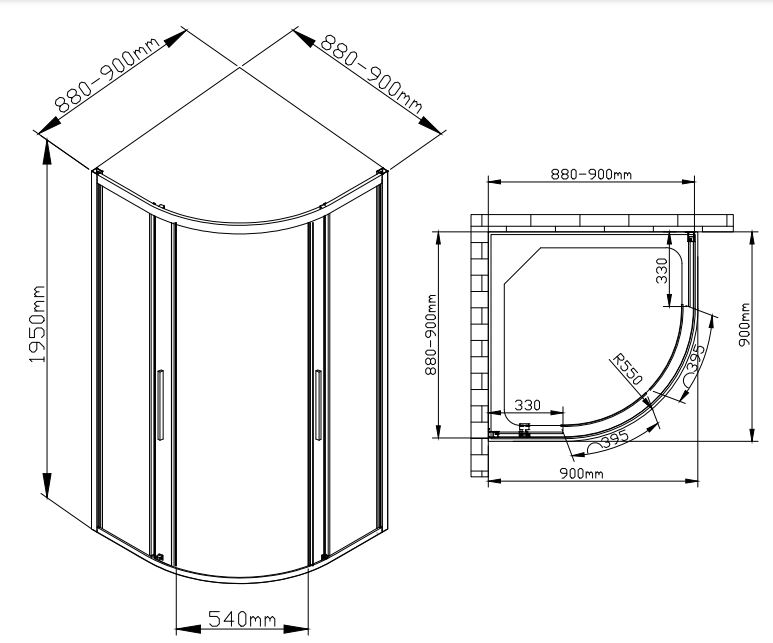 Душевое ограждение Avacan 90х90 см HB90, чёрный/узор