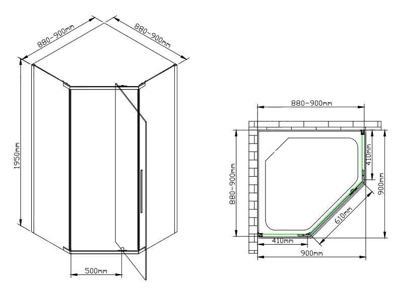 - Душевой уголок AvaCan PB 90 Black размер 880-900-195