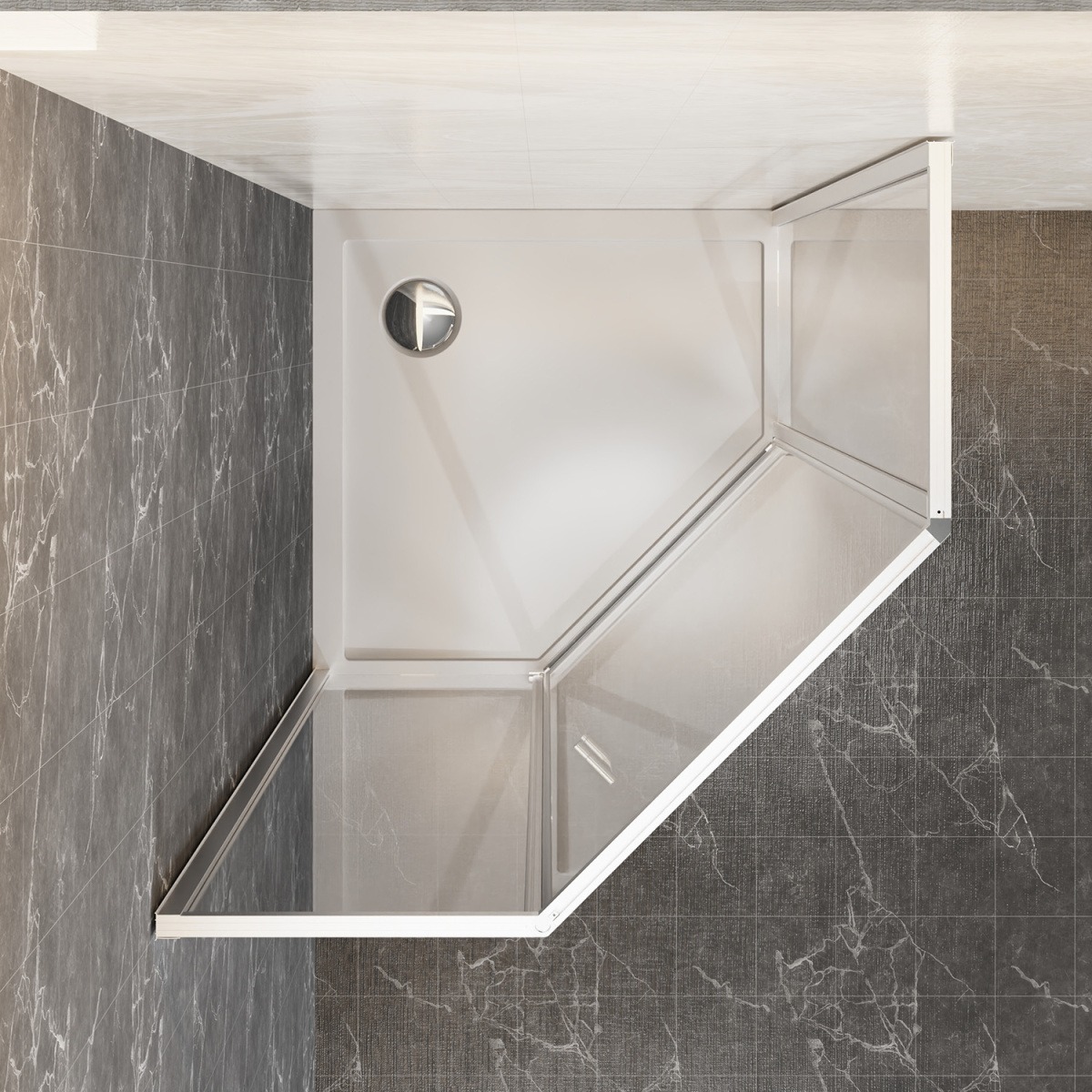 - Пятиугольный душевой уголок, с универсальной распашной дверью (L/R), на усиленном механизме микролифт.