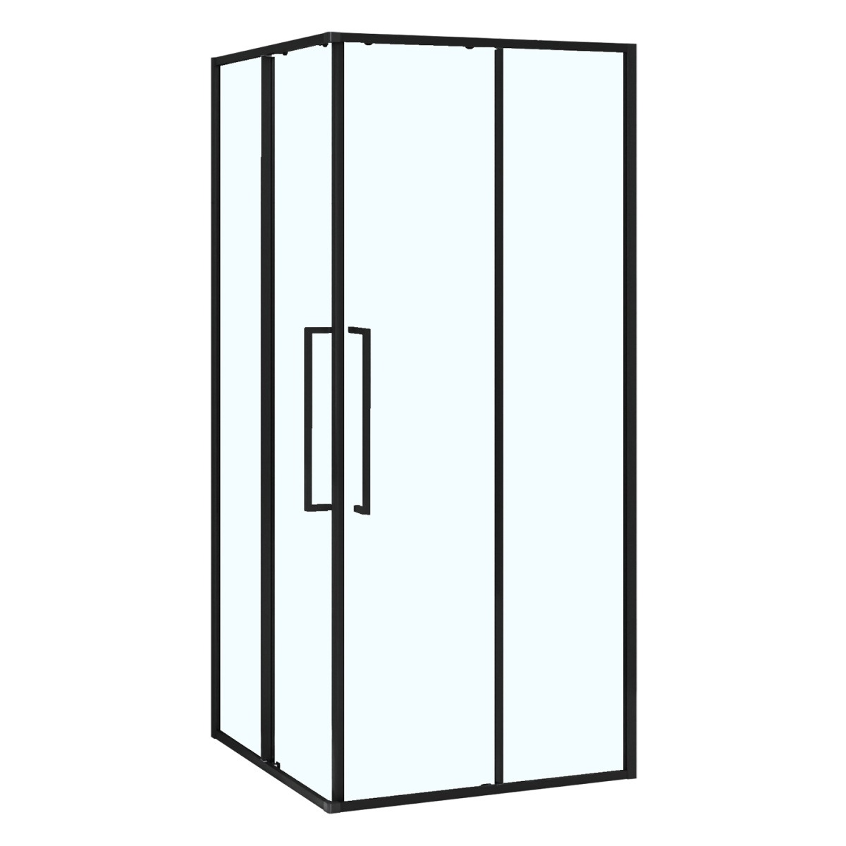 - Душевой Уголок Квадратный, ВХОД С УГЛА, с двумя раздвижными дверьми, на двойных роликах с нержавеющими подшипниками.