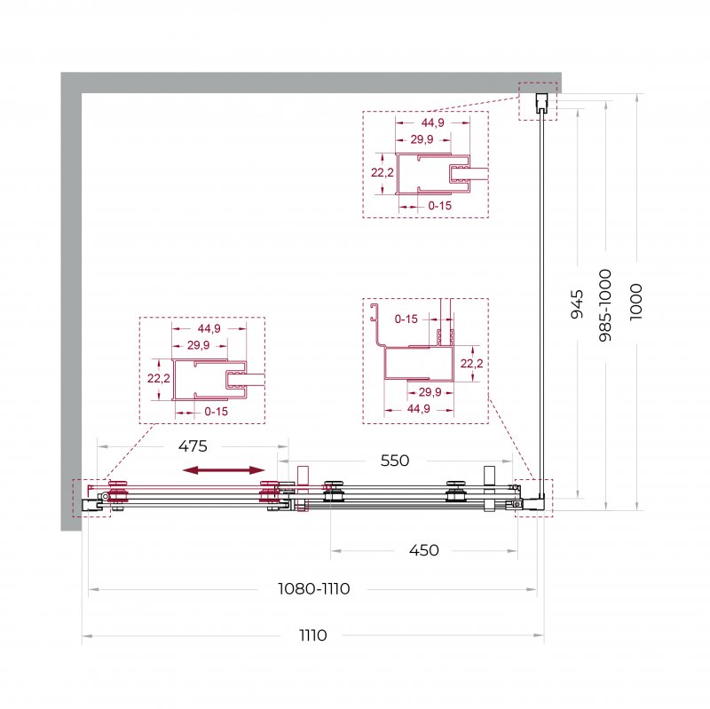 Описание Душевое ограждение BelBagno MARINO-2-AH-1-110/100-C-GM