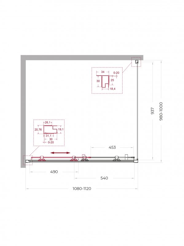 Описание Душевое ограждение BelBagno UNO-195-AH-1-110/100-C-Cr