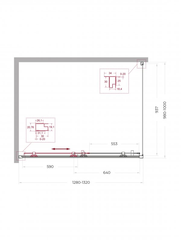 Характеристики Душевое ограждение BelBagno (UNO-195-AH-1-130/100-C-NERO)