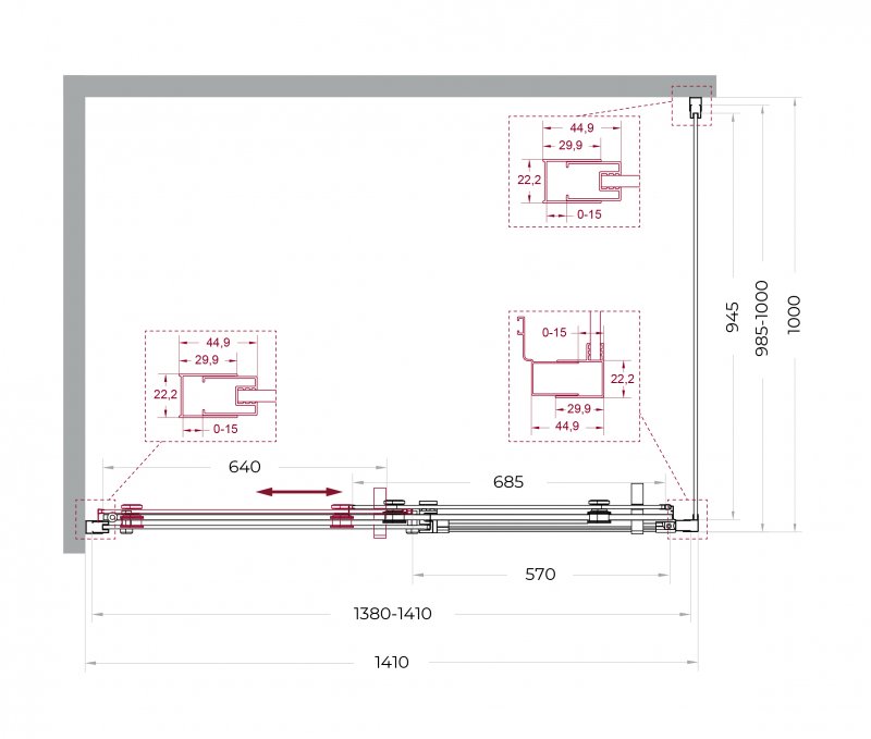 Душевое ограждение BelBagno 140x100 см MARINO-2-AH-1-140/100-C-GM, оружейная сталь/прозрачное