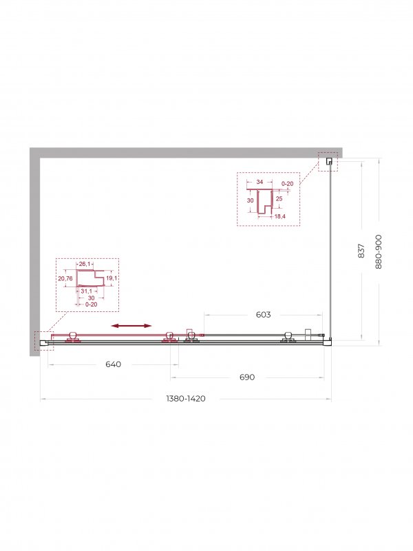 Характеристики Душевое ограждение BelBagno (UNO-195-AH-1-140/90-C-NERO)