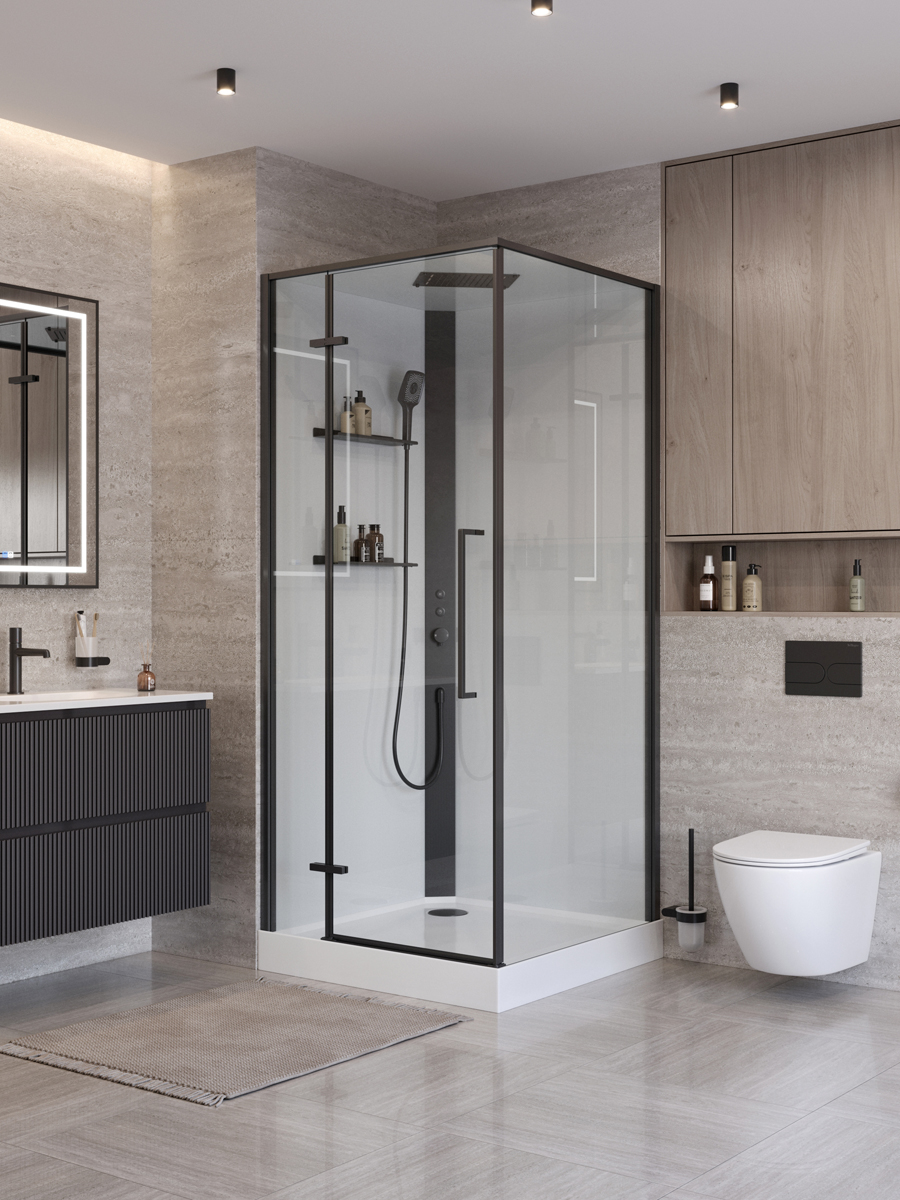 Характеристики Душевое ограждение BelBagno (UNO-CAB-A-1-90-C-NERO-Bi-TOP-L)