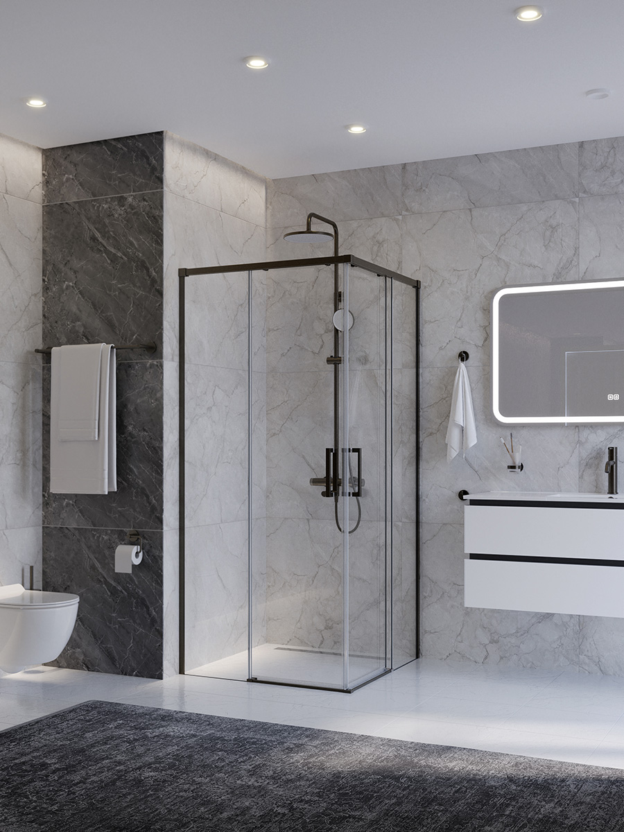 Душевое ограждение Cezares 100x100 см PLANE-A-2-100-C-GM, оружейная сталь/прозрачное
