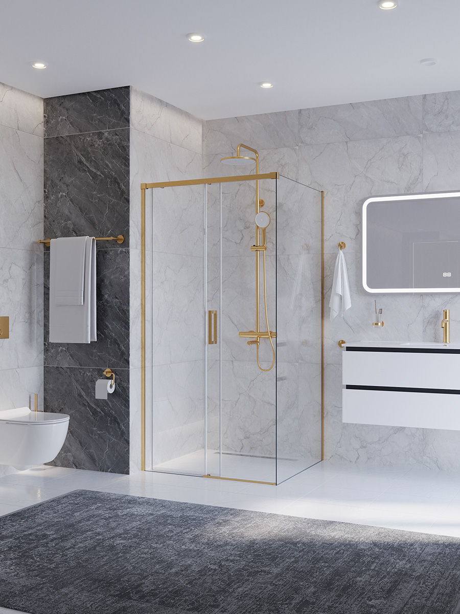 Душевое ограждение Cezares 100x80 см PLANE-AH-1-100/80-C-BORO, брашированное золото/прозрачное