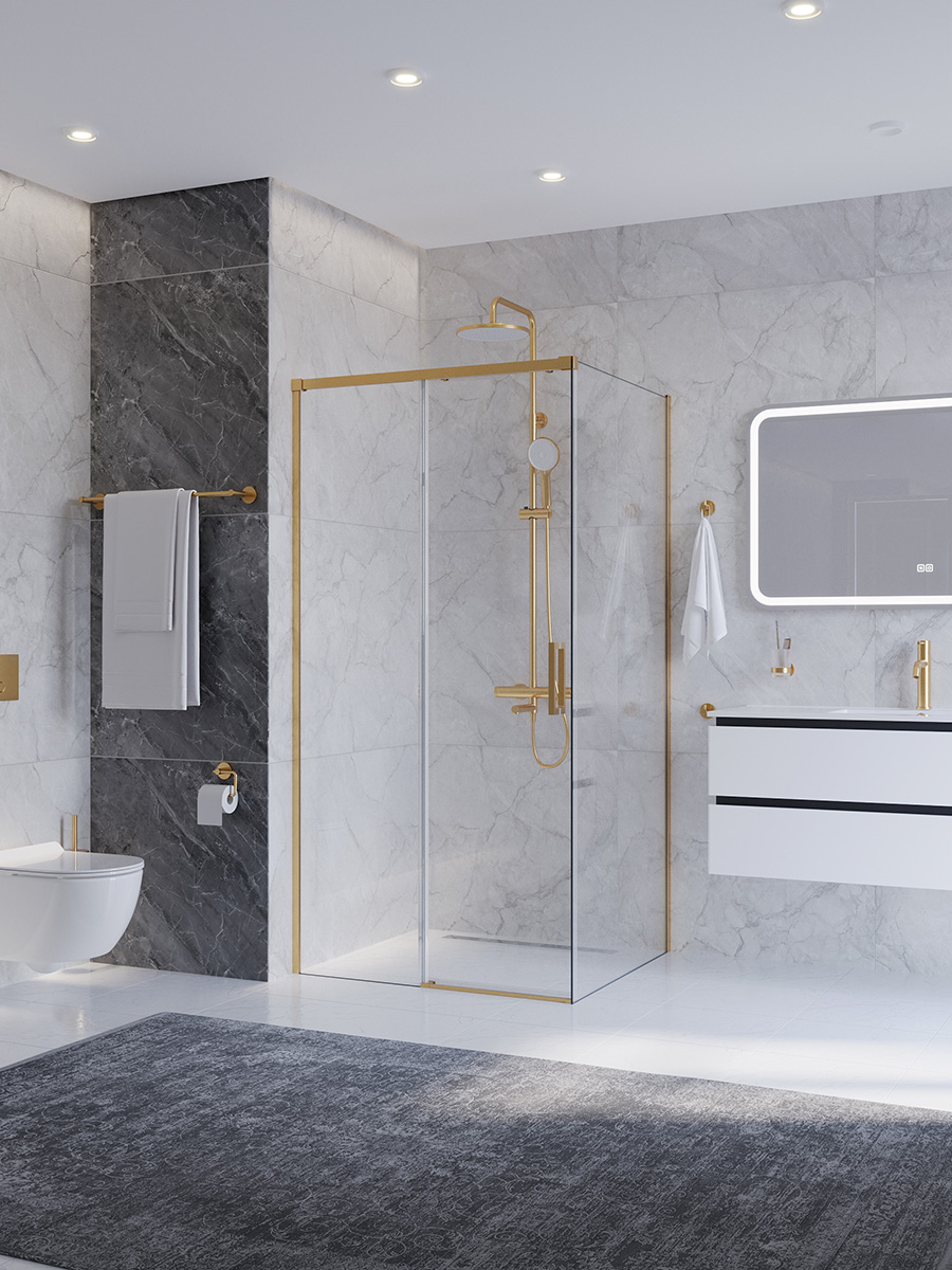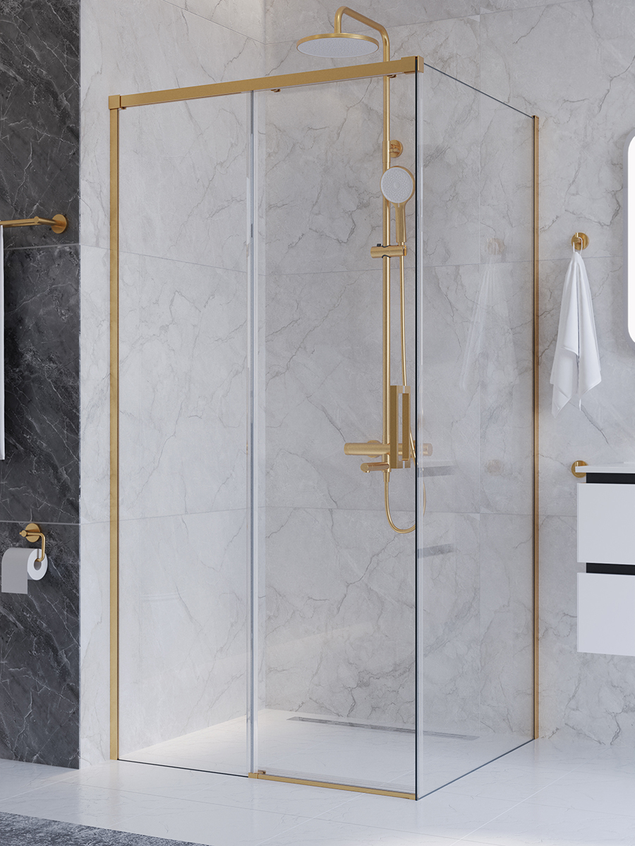 Душевое ограждение Cezares 100x90 см PLANE-AH-1-100/90-C-BORO, брашированное золото/прозрачное