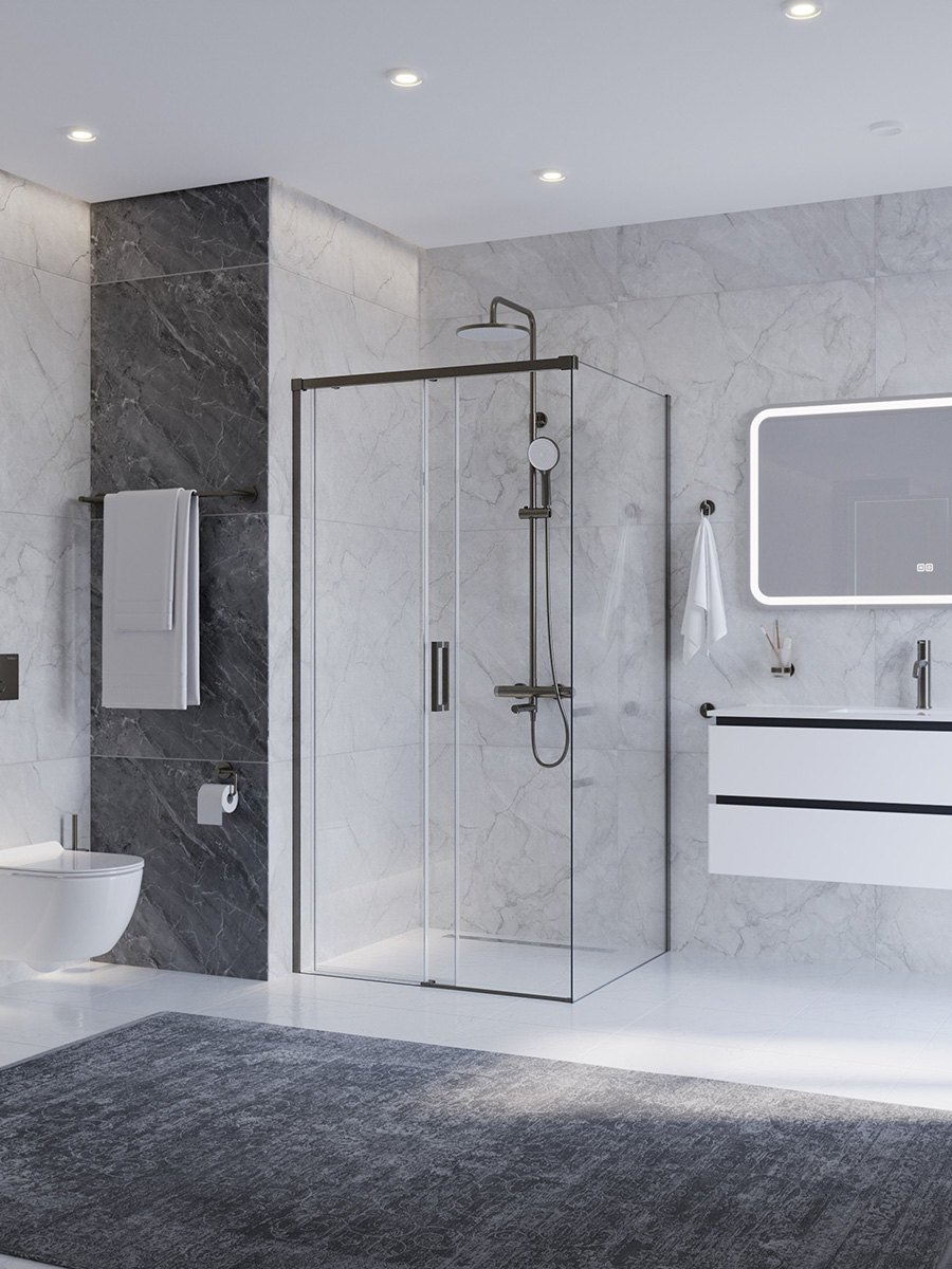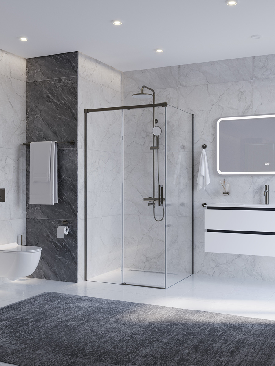 Душевое ограждение Cezares 100x90 см PLANE-AH-1-100/90-C-GM, оружейная сталь/прозрачное