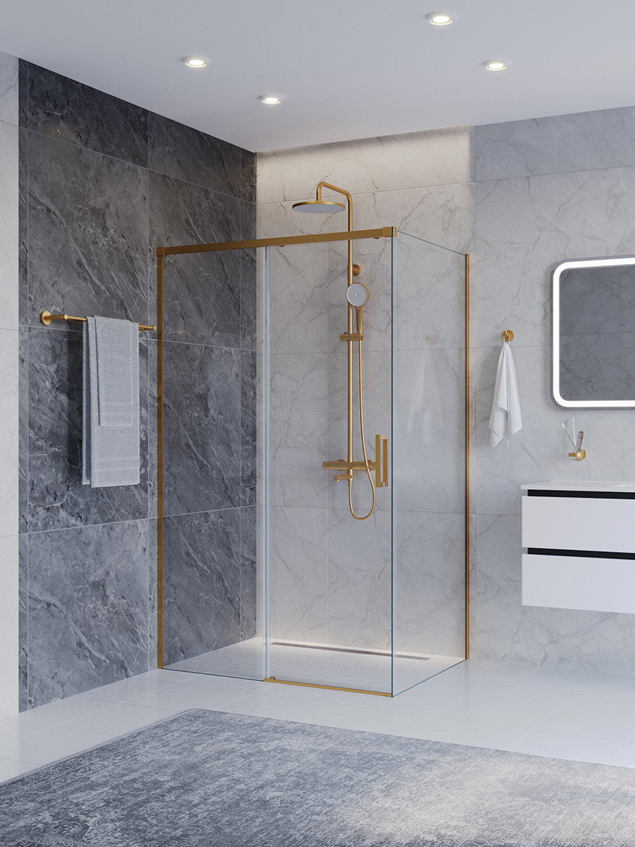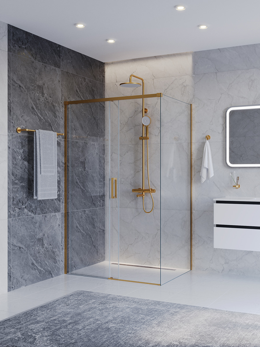 Душевое ограждение Cezares 110x100 см PLANE-AH-1-110/100-C-BORO, брашированное золото/прозрачное