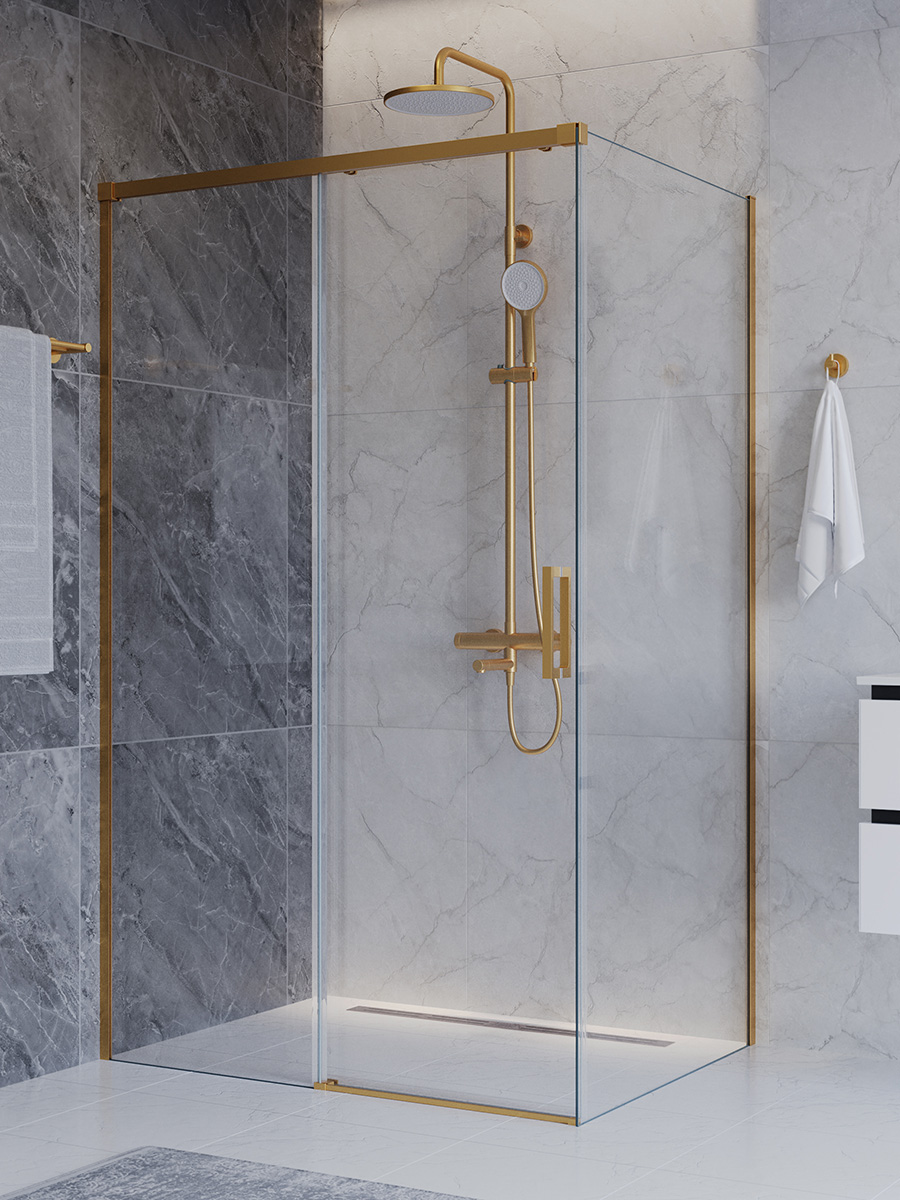 Душевое ограждение Cezares 120x80 см PLANE-AH-1-120/80-C-BORO, брашированное золото/прозрачное