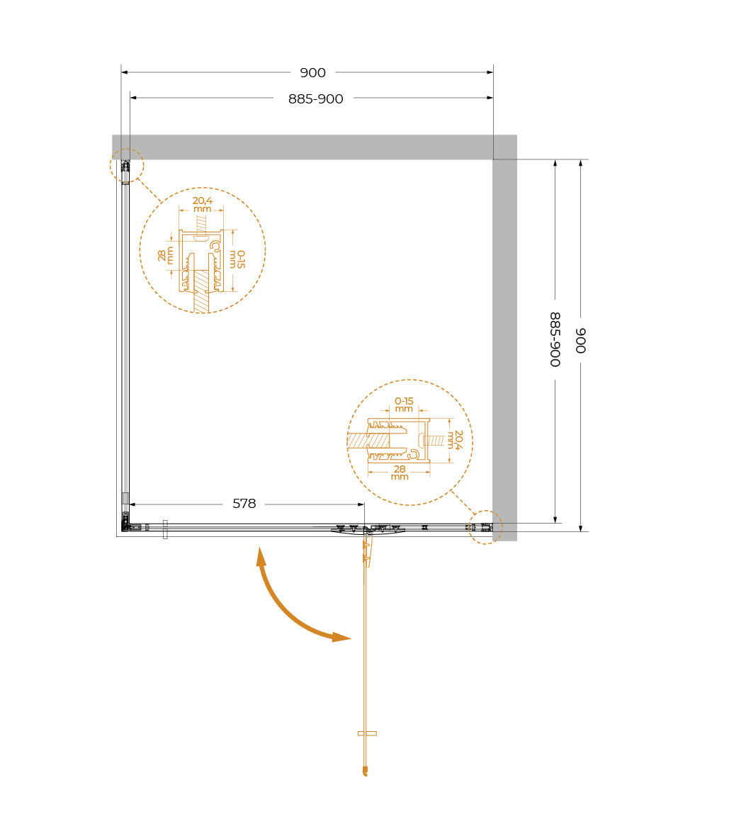Описание Душевое ограждение Cezares LINER-A-1-90-C-GM-R