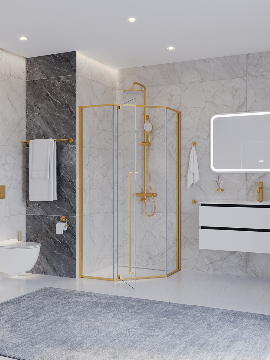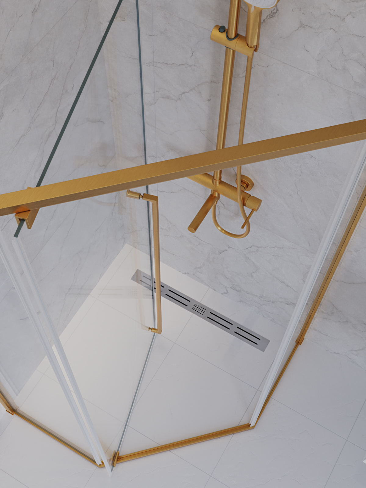 Душевое ограждение Cezares 90x90 см PLANE-P-1-90-C-BORO (стекло 8 мм) брашированное золото/прозрачное