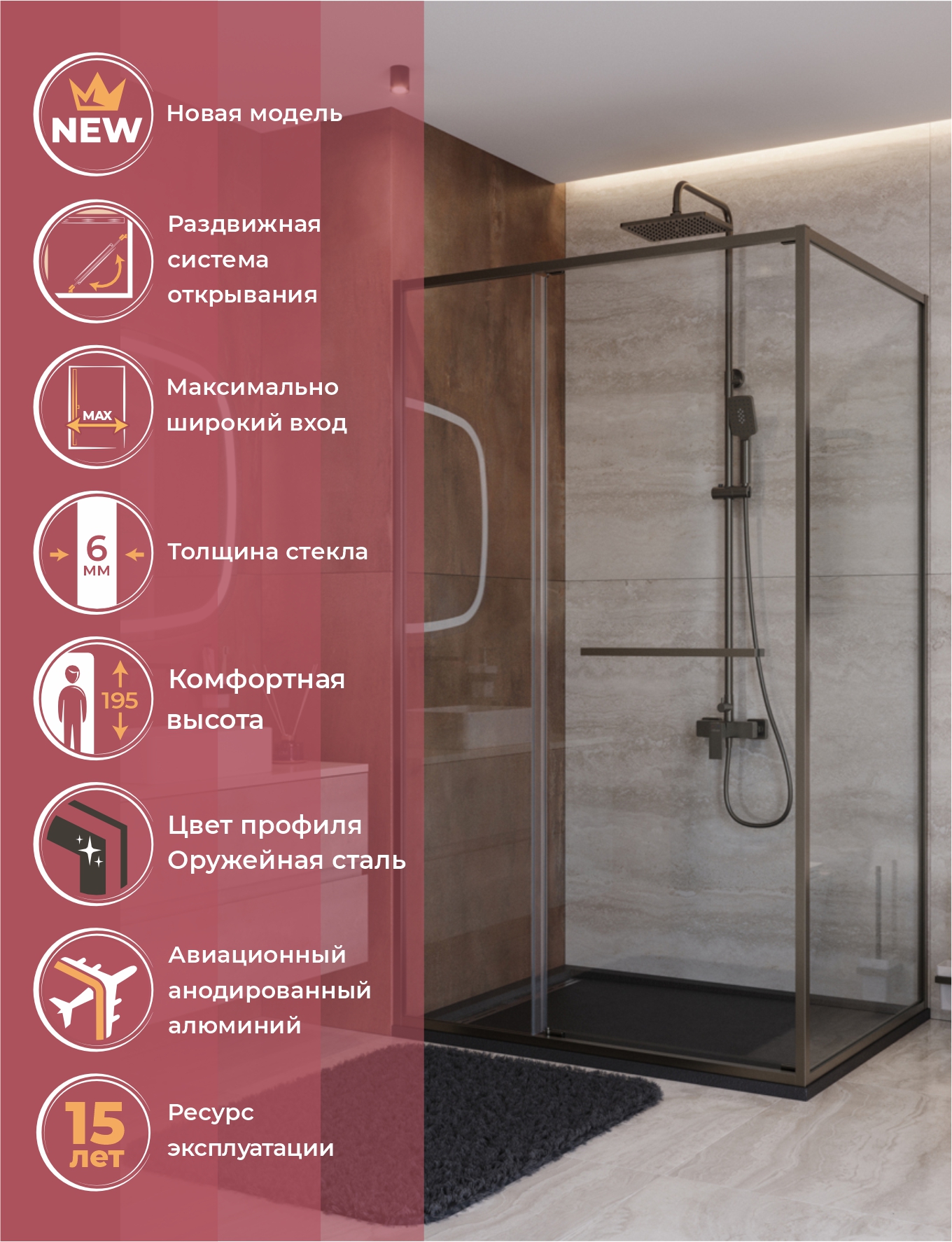 Душевое ограждение Cezares Lux 110x90 см LUX-AH-FS-11-110/90-C-GM, оружейная сталь/прозрачное