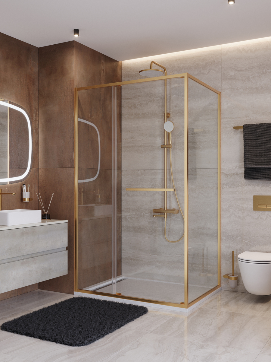 Душевое ограждение Cezares Lux 120x90 см LUX-AH-FS-11-120/90-C-BORO, брашированное золото/прозрачное